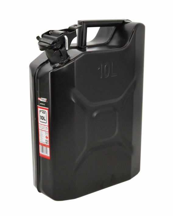 Solidna konstrukcja z grubej blachy metalowej, odpornej na uszkodzenia mechaniczne. Wykończenie malowane proszkowo gwarantuje odporność na warunki atmosferyczne. Wygodny uchwyt do trzymania czy przenoszenia. Korek wlewu posiada bezpieczne zamknięcie z uszczelką gumową zapewniające szczelność. W zestawie ocynkowana zawleczka, która stanowi dodatkowe zabezpieczenie przed przypadkowym otwarciem się wlewu kanistra Wspawana rurka odpowietrzająca eliminuje rozpryskiwania przelewanej cieczy. Przeznaczony do przewożenia lub przechowywania cieczy jak benzyna, olej napędowy oraz inne produkty naftowe. Przydatny do robienia rezerw paliw np: dla kosiarek, pił spalinowych, odśnieżarek spalinowych. Dane techniczne: Pojemność: 10L Waga: 2,4kg