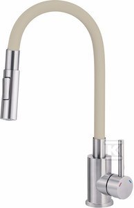 Bateria zlewozmywakowa LUNO stal-beż z elastyczna wylewką i słuchawką 2-funkcyjną o numerze katalogowym BOC_5740 w kategorii Baterie kuchenne>Baterie zlewozmywakowe stojące. Produkt wyprodukowany przez markę DEANTE, seria LUNO.