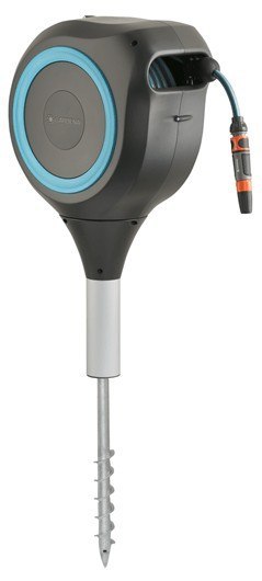 Ponadto, bęben dostosowany jest do wysokości GARDENA robotów koszących, które bez trudu wykoszą trawę wokół niego. W komplecie do bębna ogrodowego dołączony jest giętki wąż przyłączeniowy, wszystkie części i elementy Original GARDENA System niezbędne do montażu, a także zraszacz wytwarzający dwa rodzaje strumienia wody.