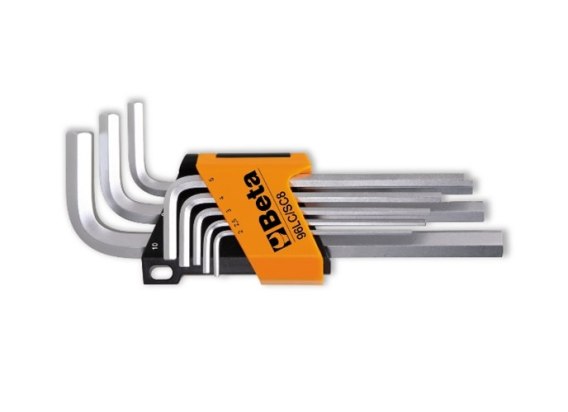 Komplet 8 kluczy trzpieniowych długich kątowych sześciokątnych Beta 96LC Rozmiary: 2 - 2.5 - 3 - 4 - 5 - 6 - 8 - 10 mm Klucze w uchwycie z tworzywa sztucznego.