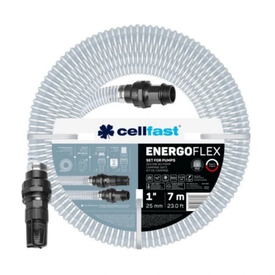 Opis produktu: umożliwia skuteczny i bezpieczny pobór wody z oczek wodnych, studni czy innych źródeł składa się z wysokiej jakości elementów, zapewniających optymalną wydajność pompy oraz jej ochronę przed zanieczyszczeniami Zestaw zawiera: wąż ssawno-tłoczny ENERGOFLEX 1" (25 mm) opaski zaciskowe x 2 szt (22-32 mm) przyłącze pompy G1" (33,3 mm) kosz ssący 1"
