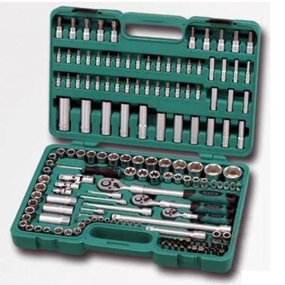 W zestawie: nasadki: 1/4` sześciokątne krótkie: 4; 4,5; 5; 5,5; 6; 7; 8; 9; 10; 11; 12; 13, 14 mm; 1/4` sześciokątne długie ( 50 mm): 4, 5, 6, 7, 8, 9, 10 mm; 3/8` sześciokątne krótkie: 10; 11; 12; 13, 14, 15, 16, 17, 18, 19 mm; 3/8` sześciokątne długie (63 mm): 10, 11, 12, 13, 14, 15 mm; 1/2` sześciokątne krótkie: 10, 11, 12, 13, 14, 15, 16, 17, 18, 19, 20, 21, 22, 24, 27, 30, 32 mm; 1/2` sześciokątne długie ( 77 mm): 14, 15, 17, 19, 22 mm; 1/4" z gniazdem Torx: E4, E5, E6, E7, E8 3/8" z gniazdem Torx: E10, E12, E14, E16, E18 1/2" z gniazdem Torx: E20, E22, E24 nasadki do świec 1/2`: 16, 21 mm; nasadka do świec 3/8`: 16mm; grzechotka teleskopowa 1/4" (72 zębów) grzechotka teleskopowa 3/8" (72 zębów) grzechotka teleskopowa 1/2" (72 zębów) przegub kardana 1/4`; przegub kardana 3/8`; przegub kardana 1/2`; przedłużki 1/4": 50, 100mm przedłużki 3/8": 75, 150mm przedłużki 1/2`: 125, 250 mm; adapter 3/8" do końcówek 10mm adapter 1/2" do końcówek 10mm itp.