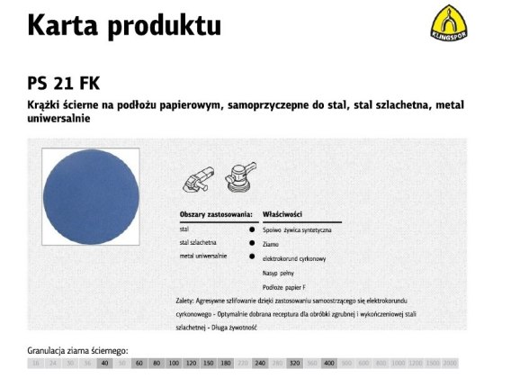Obszary zastosowania: - stal - stal szlachetna - metal uniwersalnie Właściwości: Spoiwo: żywica syntetyczna Ziarno: elektrokorund cyrkonowy Nasyp: pełny Podłoże: papier F Zalety: - Agresywne szlifowanie dzięki zastosowaniu samoostrzącego się elektrokorundu cyrkonowego - Optymalnie dobrana receptura dla obróbki zgrubnej i wykończeniowej stali szlachetnej - Długa żywotność