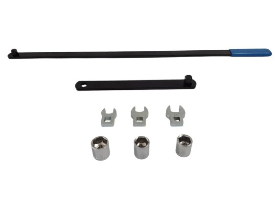 Typ: zestaw kluczy do napinaczy Elementy zestawu: Nasadki CrV: 15, 16, 18 mm (20 mm długości) Klucze płaskie specjalne: 13, 14, 15 mm Uchwyt krótki: 225 mm Uchwyt długi: 590 mm Materiał: stal CrV (chromowo-wanadowa) Ilość elementów: 8 szt.