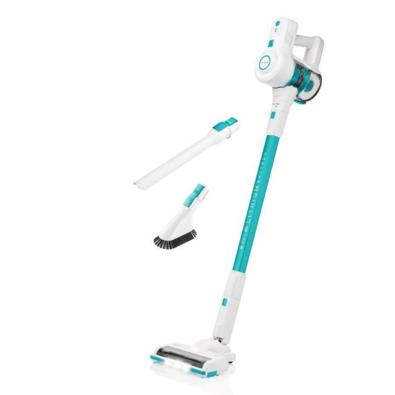 Informacje dodatkowe: Bateria litowo-jonowa 21,6 V, Odkurzacz 2 w 1 - pionowy i ręczny, Filtr HEPA, Podświetlenie LED, Czas pracy max 30min., Czas ładowania 5h
