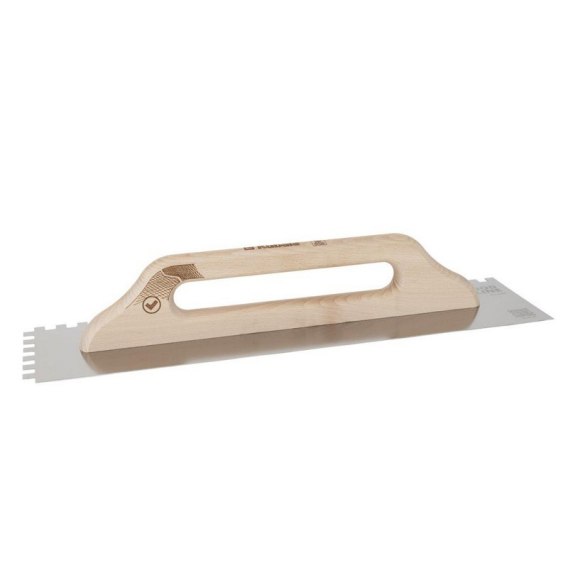 Klasyczna paca z zębem i ergonomicznym uchwytem z naturalnego drewna bukowego.