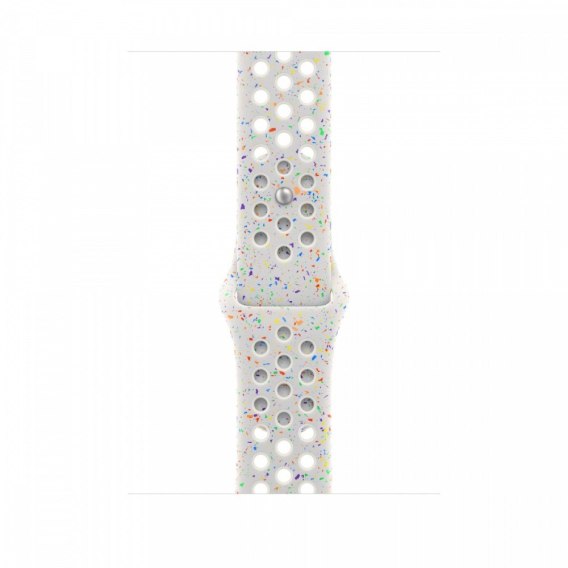 Pasek sportowy Nike jest mocny i wytrzymały, a jednocześnie zaskakująco miękki. Jego przewiewność zwiększają specjalnie wytłoczone otwory. Kolorowe płatki ułożone w losowe wzory nadają każdemu paskowi niepowtarzalny wygląd. Gładki, zwarty materiał jest przyjemny w dotyku i elegancko oplata nadgarstek. A aluminiowe zapięcie z napą i szlufką ma oryginalne matowe wykończenie.