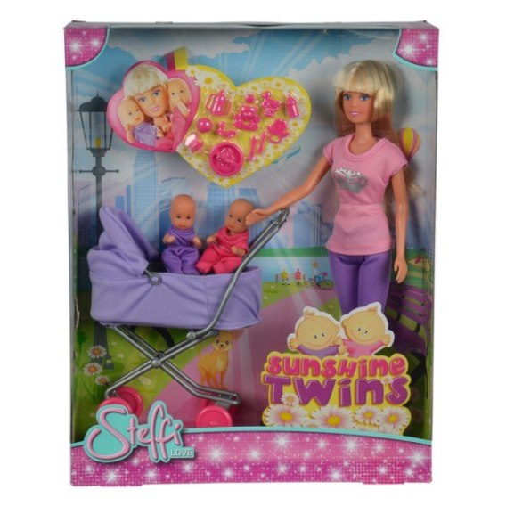 Steffi z dwójką dzieci w wózku, z akcesoriami, 10 elementów.