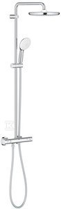 Termostatyczny system prysznicowy Tempesta System 250 do montażu ściennego, chrom, blokada bezpieczeństwa SafeStop, ogranicznik przepływu 8,5 l/min, w zestawie: deszczownica jednostrumieniowa, ramię prysznica 390 mm, prysznic ręczny 2 strumienie, wąż prysznicowy 1750 mm, prysznicowa bateria termostatyczna, regulowany uchwyt prysznica, drążek 1016 mm o numerze katalogowym 26670001 w kategorii Zestawy prysznicowe>Deszczownice, głowice górne, zestawy z bateriami. Produkt wyprodukowany przez markę GROHE, seria TEMPESTA.