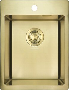 Zlewozmywak stalowy Olfato Precious, złoto szczotkowane, 1-komorowy 390x505x200 mm + osprzęt Space-Saver o numerze katalogowym  ZPO_R10E w kategorii Zlewozmywaki>Zlewy stalowe 1 komorowe. Produkt wyprodukowany przez markę DEANTE, seria OLFATO.