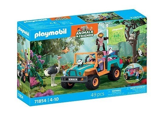 Zapinaj pasy ruszamy na dziką wyprawę przez dżunglę z terenówką PLAYMOBIL! W pojeździe zmieszczą się cztery figurki, a nawet zwierzęta mają swoje ulubione miejsca. Mała panda wygląda przez okno, figlarna małpka wskakuje na pokład, a koala tuli się do swojej mamy wszyscy są gotowi na przygodę! Stwórz idealną scenerię z pomocą zacienionego drzewa, ptasiego gniazda i mnóstwa zabawnych dodatków. Ten szczegółowy zestaw PLAYMOBIL, pełen zwierząt i przygód, pobudza wyobraźnię i zaprasza do tworzenia własnych historii z dżungli!